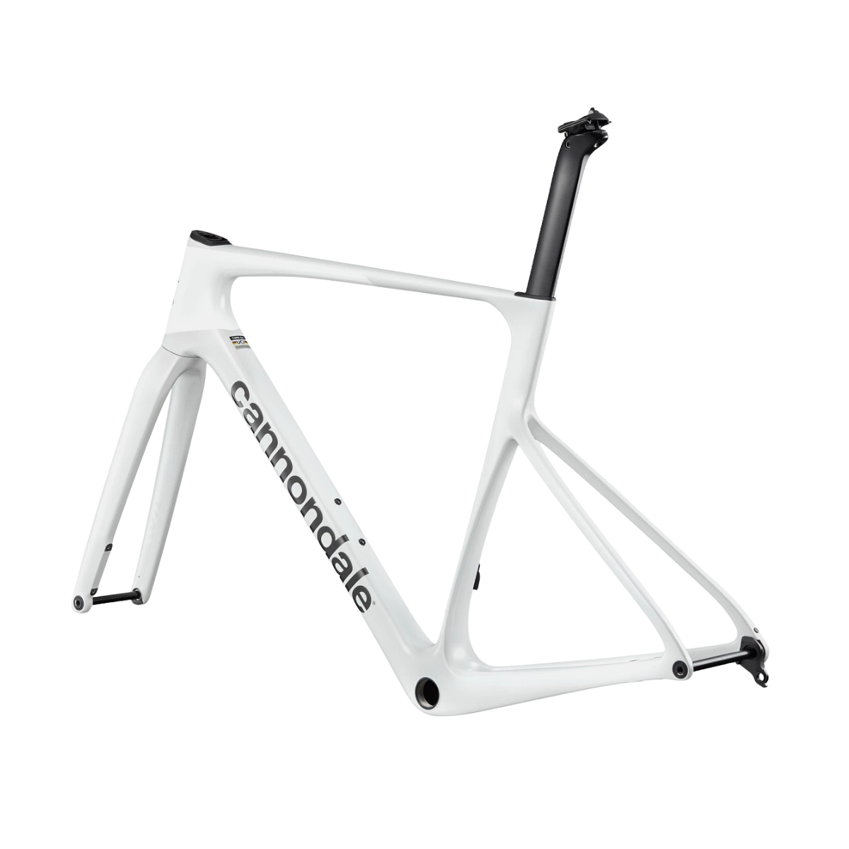 SuperSix EVO Carbon, integrated crown race, 12x100mm thru-axle, flat mount disc, internal routing, 1-1/8" to 1-1/4" Delta steerer, 55mm offset (44-54cm), 45mm offset (56-61cm)